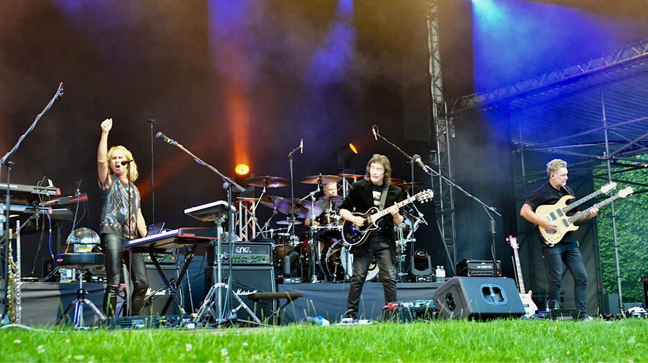 Steve Hackett, der ehemalige Genesis-Gitarrist und mit mittlerweile 74 Jahren immer noch ein grandioser Virtuose an seiner Gitarre, gab sich am Freitagabend bei bestem Sommerwetter die Ehre, ein wunderbares Konzert mit neuen und alten Songs zu präsentieren. Dabei war das Areal des lauschigen Stadtparks völlig bestuhlt und das Gros des Publikums eher 65 Jahre plus. Trotzdem herrschte von Beginn an eine mitreißende Aufgeregtheit und Vorfreude.
