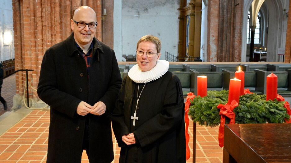 Ministerpräsident Torsten Albig und Pröpstin Petra Kallies in St. Marien in Lübeck
