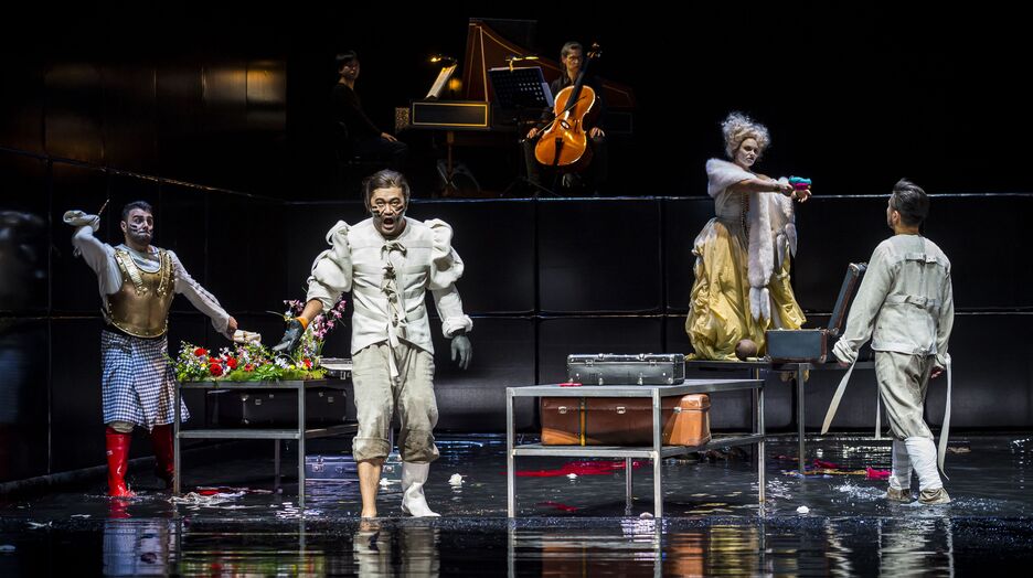Evmorfia Metaxaki (Seleuce), Andrea Stadel (Elisa), Johan Hyunbong Choi (Araspe) Im Hintergrund: Takahiro Nagasaki (Cembalo) und Imke Frank (Cello)